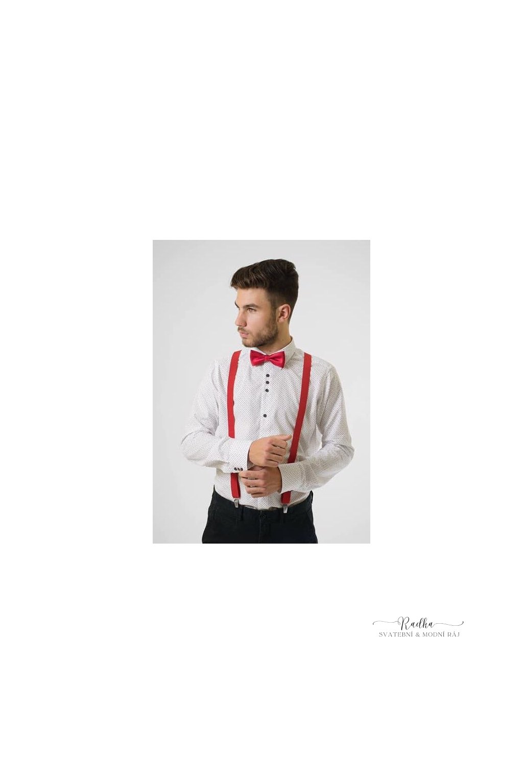 Pánský dvojitý motýlek s kapesníčkem. Ke krku se uchytí elegantním zapínáním s možností nastavení správné délky. Velikost cca 12,5 cm, rozměry kapesníčku cca 28 x 28 cm. Dodáván s kapesníčkem v papírové krabičce. Ve stejném vzoru lze pořídit i chlapecký motýlek.
