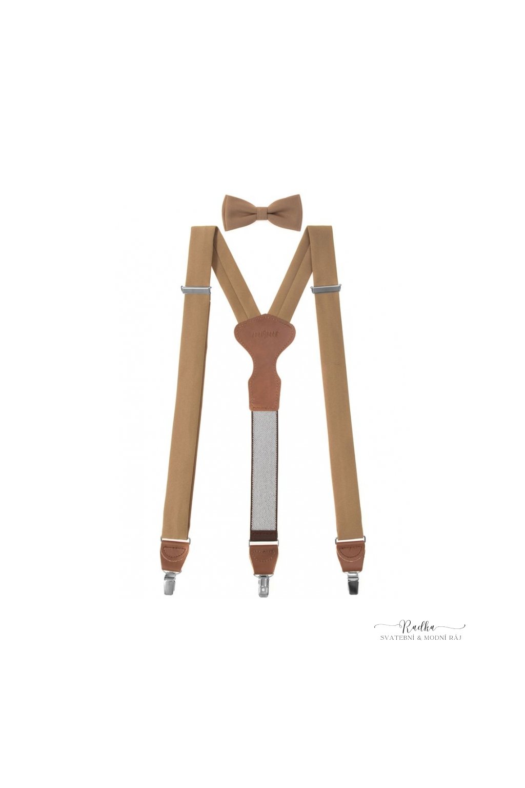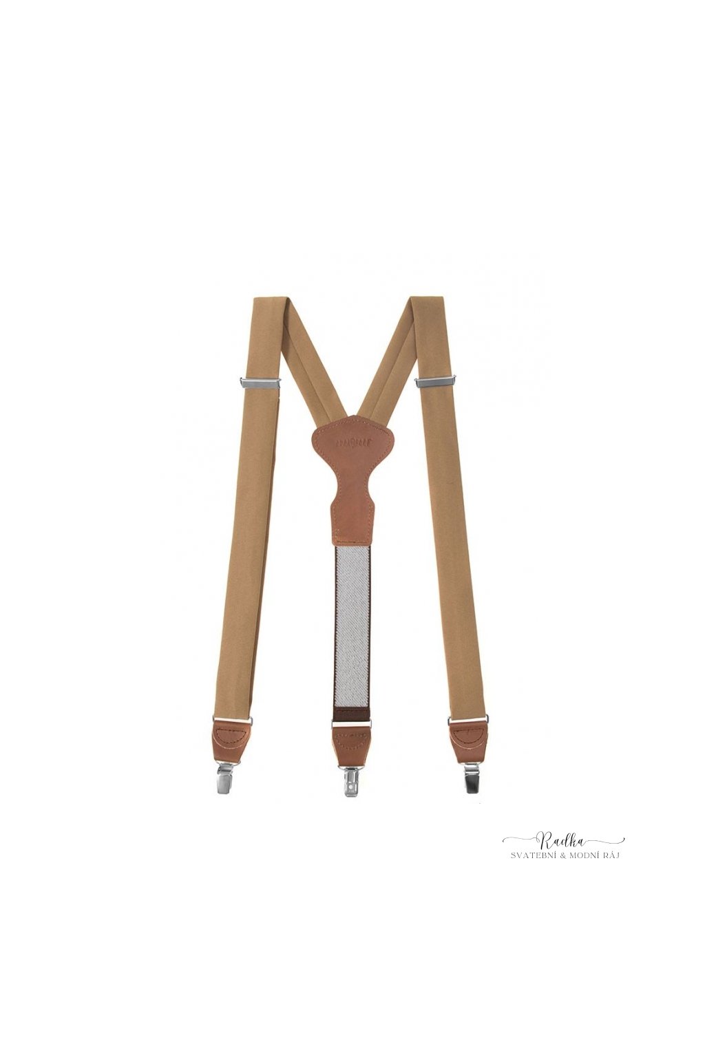 Látkové šle s koženým středem a zapínáním na klipy.