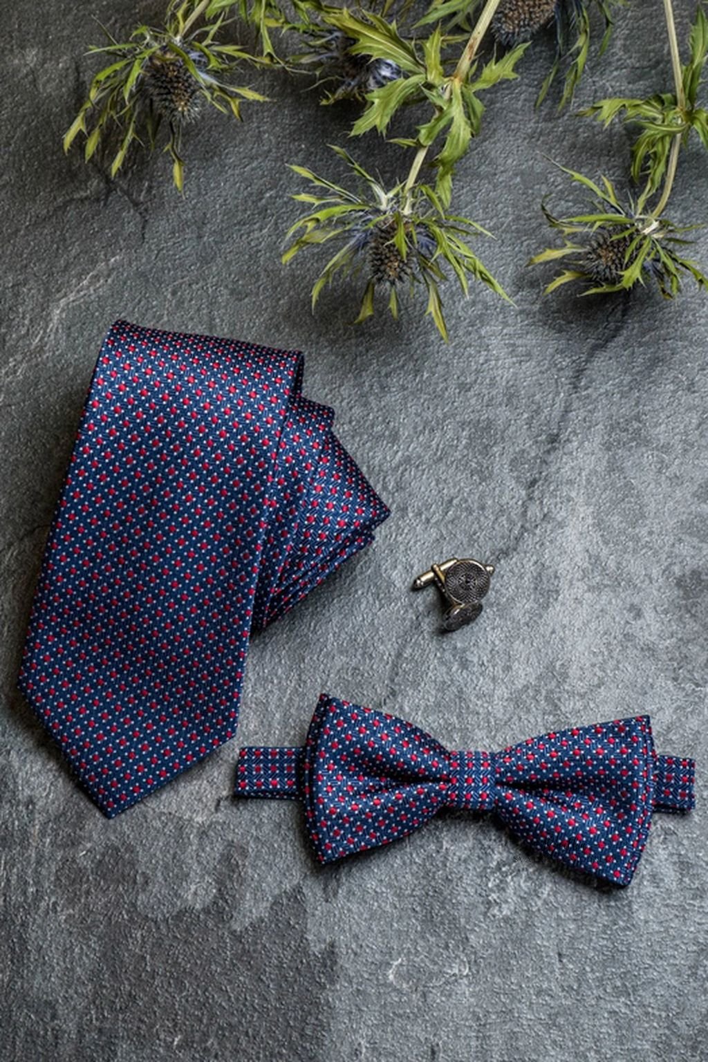 - Motýlek a kapesníček - vyrobeny ze stejné látky.