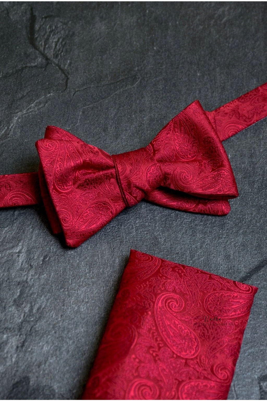 Pánský motýlek má předvázaný pevný uzel a nastavitelný pásek, který umožňuje pohodlné přizpůsobení obvodu krku v rozmezí 27 - 56 cm. Šířka motýlku je přibližně 12,5 cm. Součástí sady je také kapesníček o rozměrech 28 x 28 cm. Všechny komponenty v sadě - motýlek s páskem na zapínání i kapesníček - jsou vyrobeny ze stejné látky. Baleno v elegantní papírové krabičce.