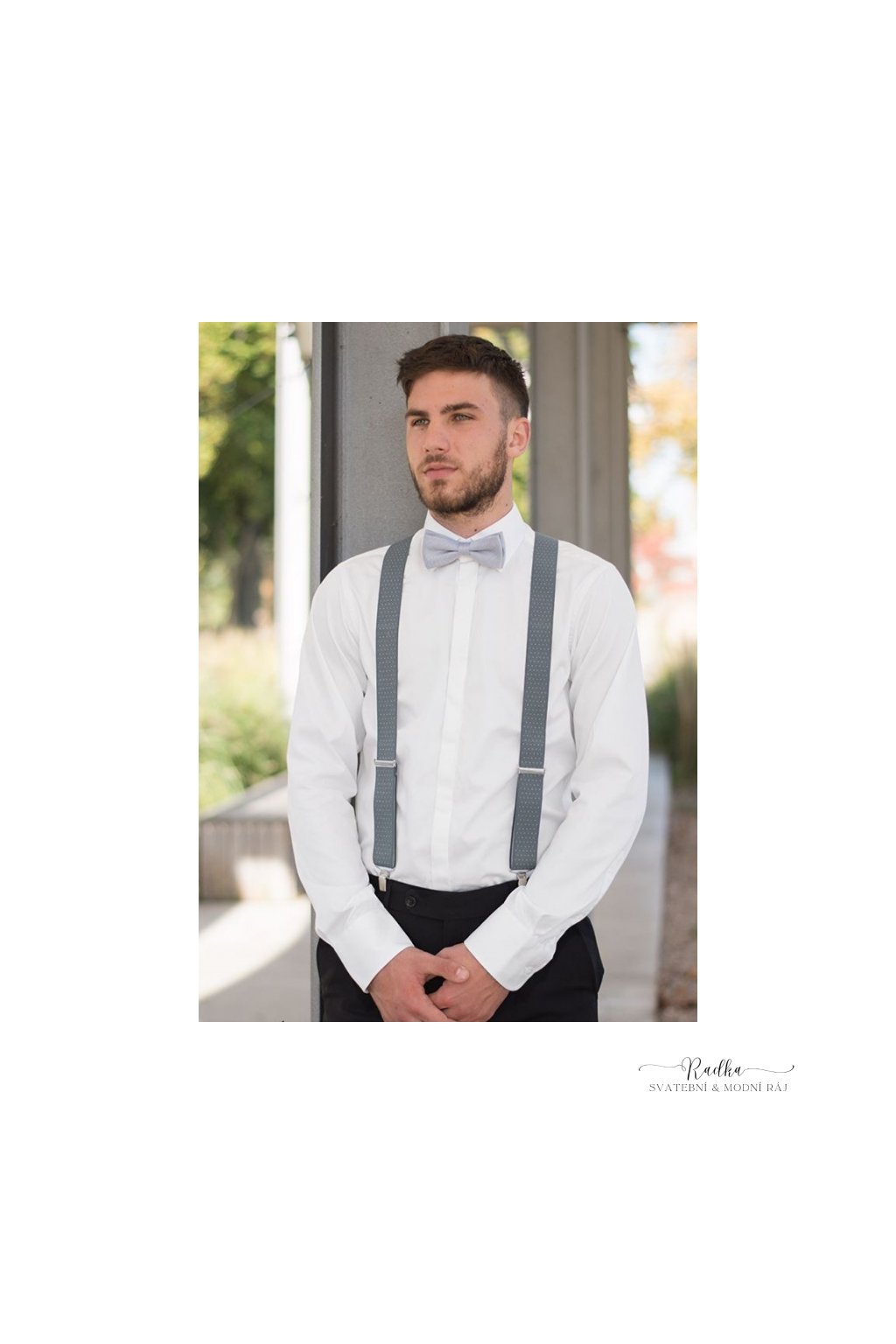 Pánský dvojitý motýlek s kapesníčkem. Ke krku se uchytí elegantním zapínáním s možností nastavení správné délky. Velikost cca 12,5 cm, rozměry kapesníčku cca 28 x 28 cm. Dodáván s kapesníčkem v papírové krabičce. Ve stejném vzoru lze pořídit i chlapecký motýlek.