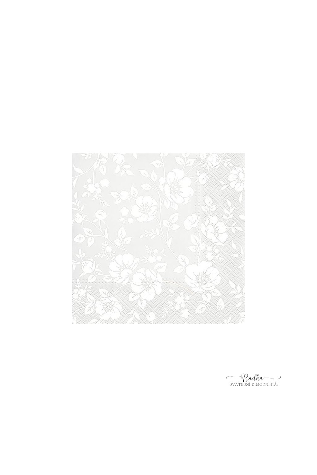 Svatební papírové ubrousky se vzorem krajky s podkladem jemně šedostříbrné barvy .