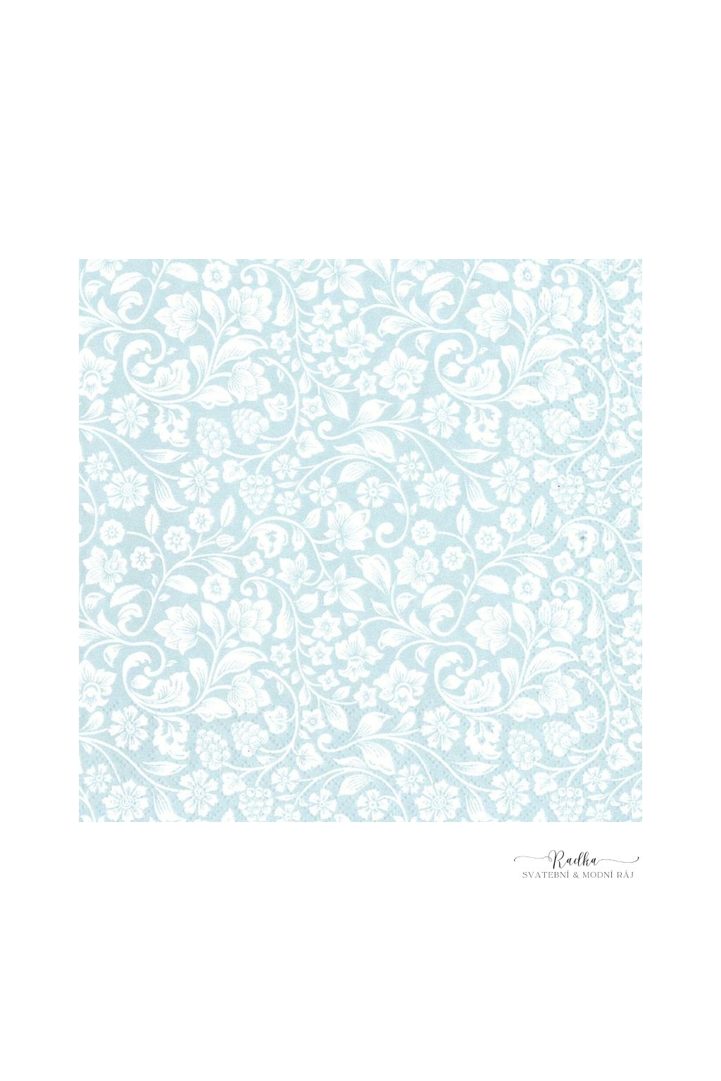 Svatební papírové ubrousky s motivem romantické louky s podkladem blankytně modrým .