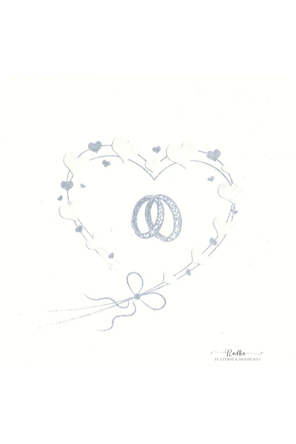 Svatební papírové ubrousky s motivem stříbrných snubních prstenů v srdci.